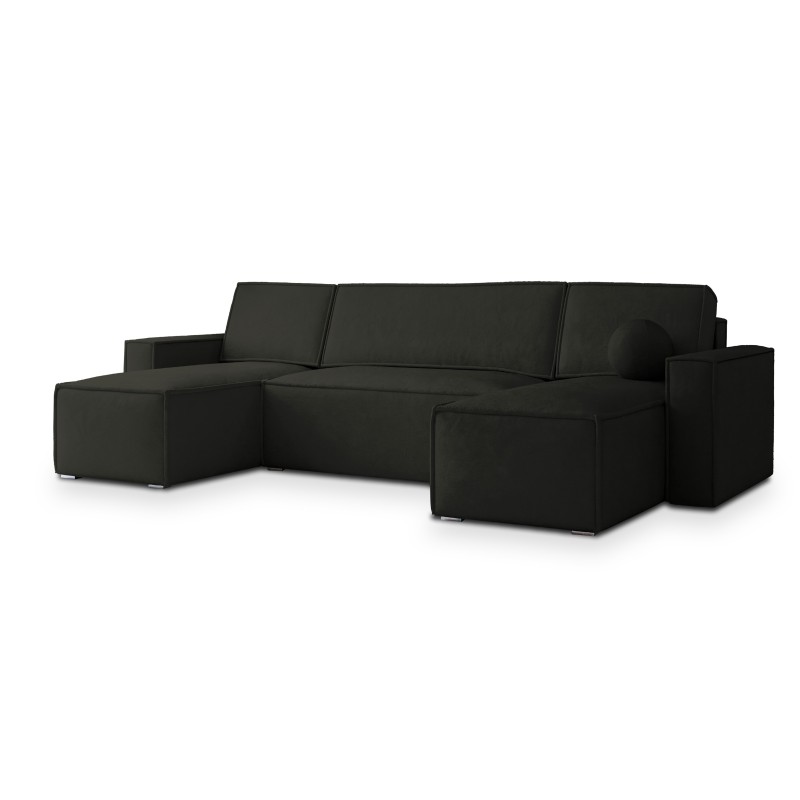 Masseno Narożnik PESANO z funkcją spania i pojemnikiem na pościel Narozniki U, Rozkładana sofa - Czarny, MONOLITH 95