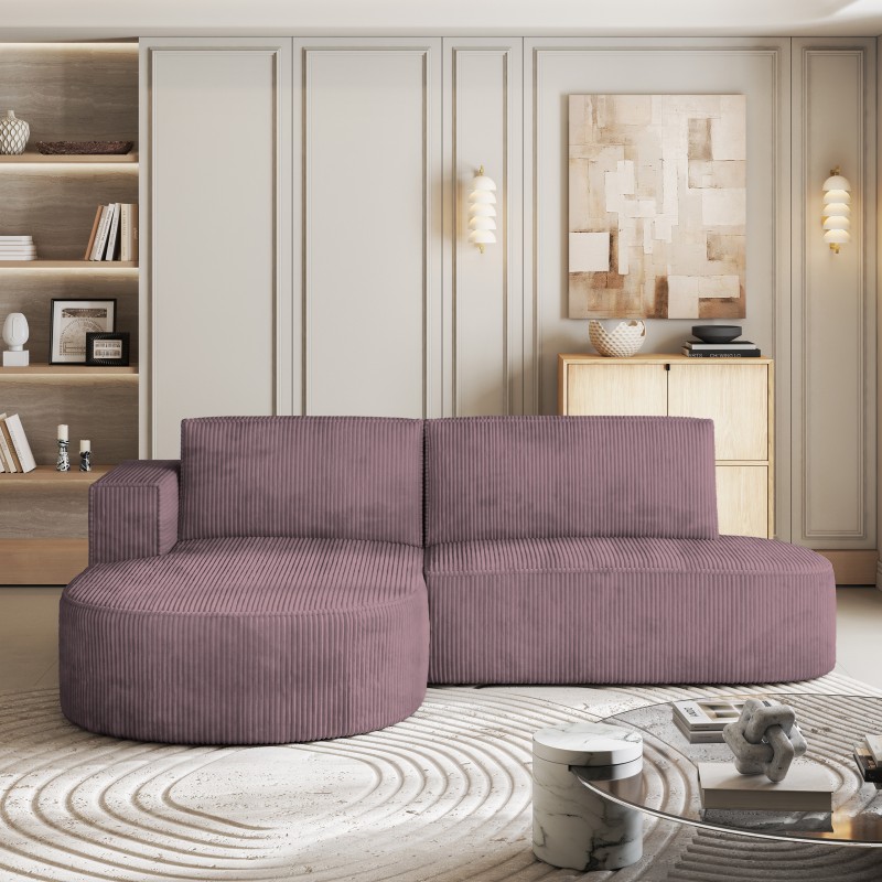 Masseno Narożnik CORTIO z funkcją spania i pojemnikiem na pościel Narozniki L, Rozkładana sofa - Wrzos, POSO 130