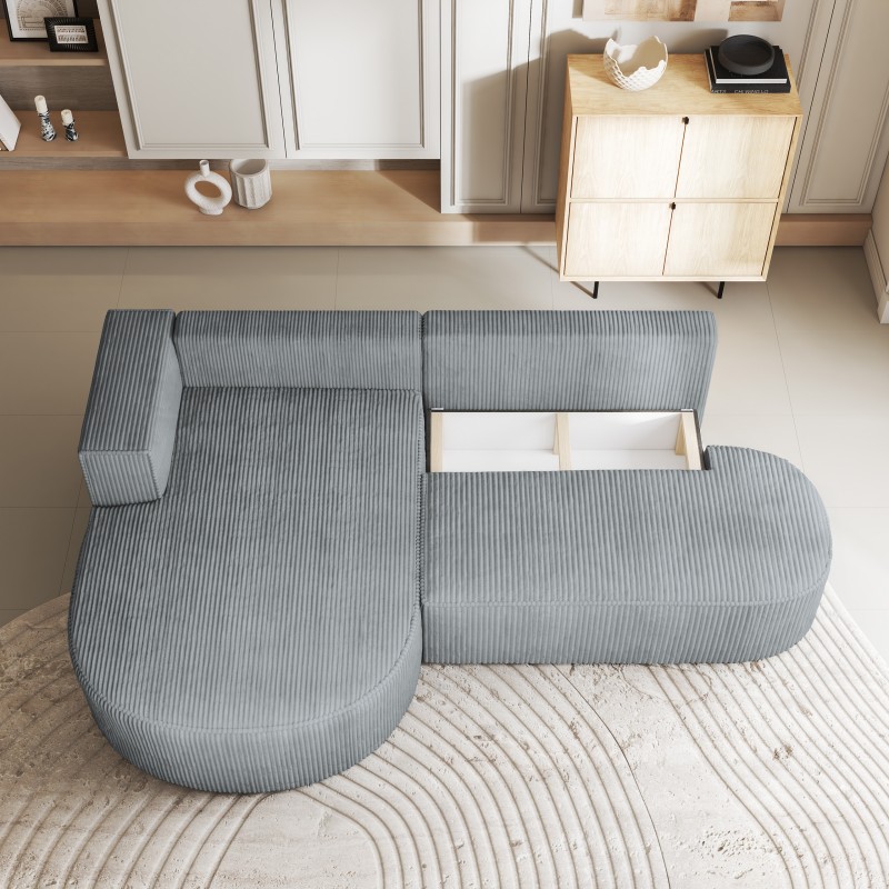 Masseno Narożnik CORTIO z funkcją spania i pojemnikiem na pościel Narozniki L, Rozkładana sofa - Jasnoszary, POSO 55