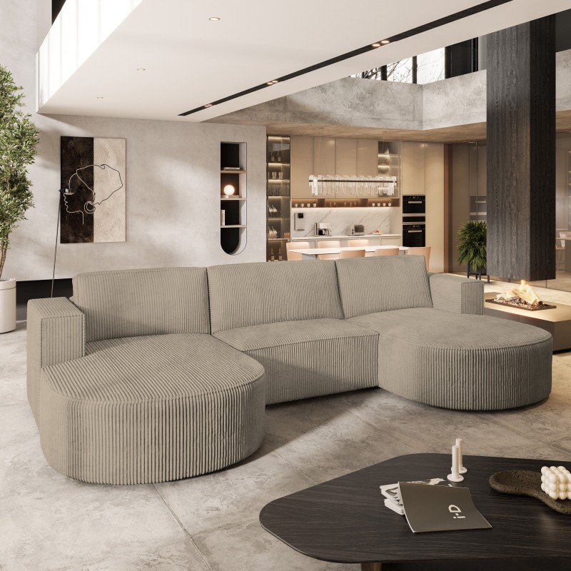 Miękkie, komfortowe siedziska, wyprofilowane oparcia i wygodna wysokość sprawiają, że każdy moment spędzony na VEZZO to chwila prawdziwego relaksu. Wersja tapicerowana tkaniną POSO - nowoczesnym sztruksem - dodaje narożnikowi wyjątkowego charakteru. Materiał ten jest mięsisty, przyjemny w dotyku i modny, a jego struktura pięknie układa się na designerskiej formie mebla. POSO to także praktyczne rozwiązanie – tkanina dobrze się układa, jest odporna na mechacenie i znakomicie odnajduje się w codziennym użytkowaniu. VEZZO to nie tylko design – to także funkcjonalność. Wbudowany pojemnik na pościel pozwala na wygodne przechowywanie tekstyliów, a funkcja spania sprawia, że mebel w kilka chwil może zamienić się w pełnoprawne łóżko dla Twoich gości.