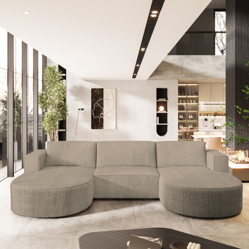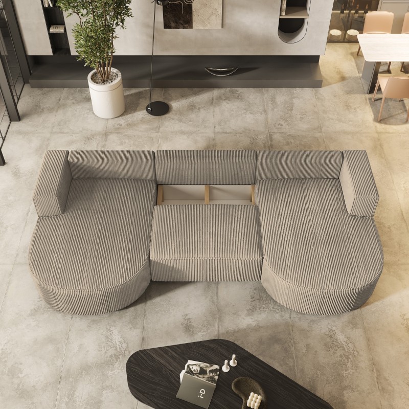 Masseno Narożnik VEZZO z funkcją spania i pojemnikiem na pościel Narozniki U, Rozkładana sofa - Beżowy, POSO 02