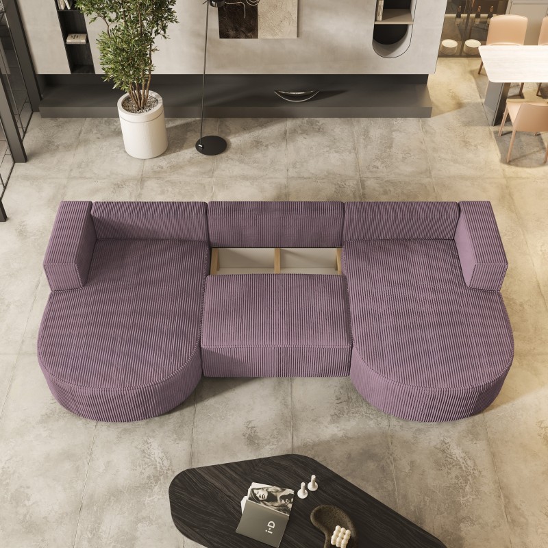 Masseno Narożnik VEZZO z funkcją spania i pojemnikiem na pościel Narozniki U, Rozkładana sofa - Wrzos, POSO 130
