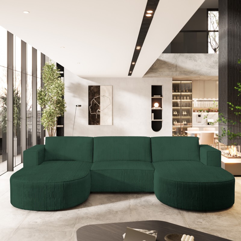 Masseno Narożnik VEZZO z funkcją spania i pojemnikiem na pościel Narozniki U, Rozkładana sofa - Zielony, POSO 14
