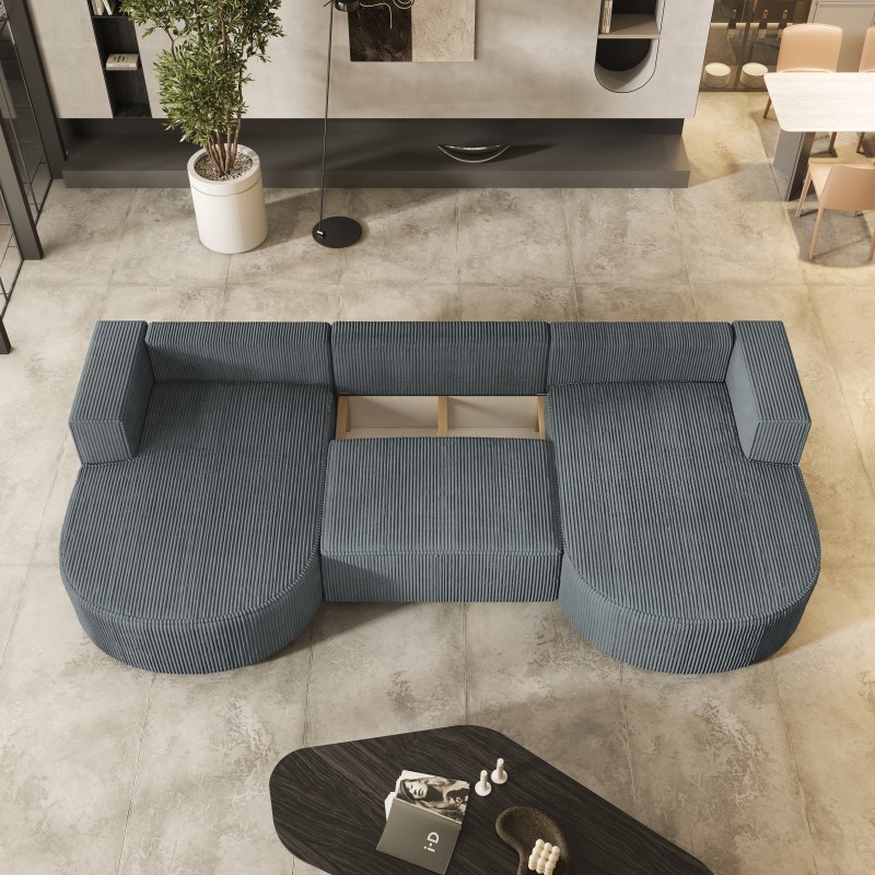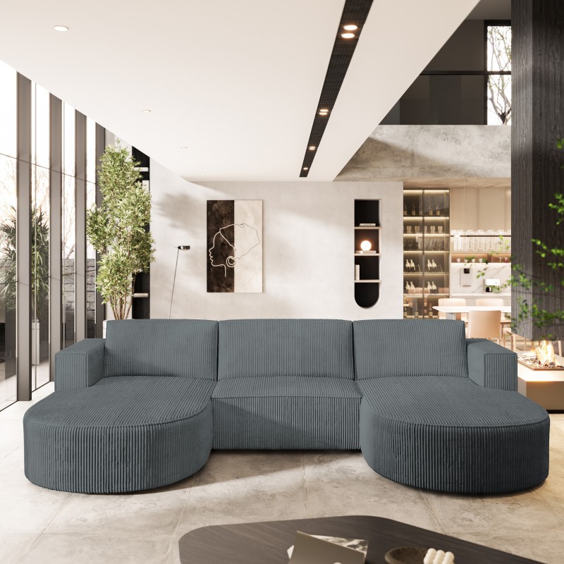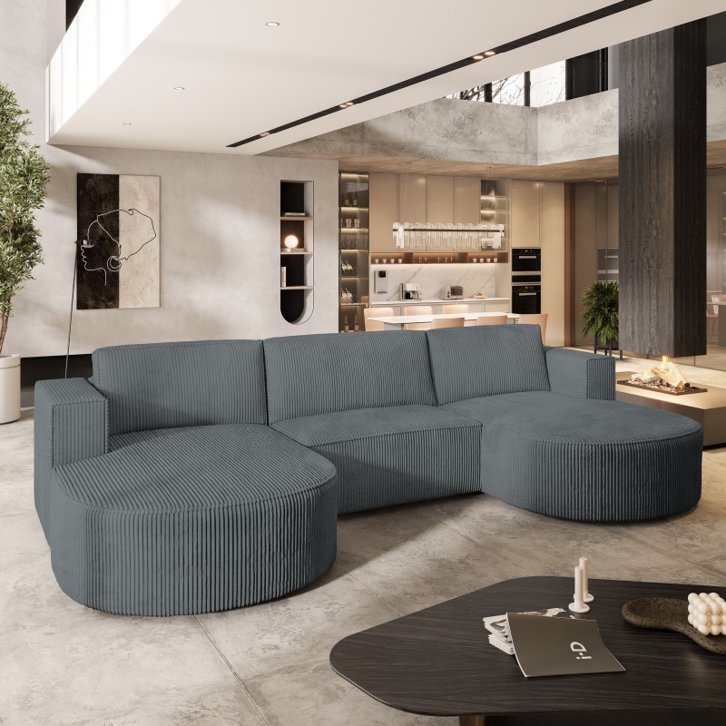 Miękkie, komfortowe siedziska, wyprofilowane oparcia i wygodna wysokość sprawiają, że każdy moment spędzony na VEZZO to chwila prawdziwego relaksu. Wersja tapicerowana tkaniną POSO - nowoczesnym sztruksem - dodaje narożnikowi wyjątkowego charakteru. Materiał ten jest mięsisty, przyjemny w dotyku i modny, a jego struktura pięknie układa się na designerskiej formie mebla. POSO to także praktyczne rozwiązanie – tkanina dobrze się układa, jest odporna na mechacenie i znakomicie odnajduje się w codziennym użytkowaniu. VEZZO to nie tylko design – to także funkcjonalność. Wbudowany pojemnik na pościel pozwala na wygodne przechowywanie tekstyliów, a funkcja spania sprawia, że mebel w kilka chwil może zamienić się w pełnoprawne łóżko dla Twoich gości.