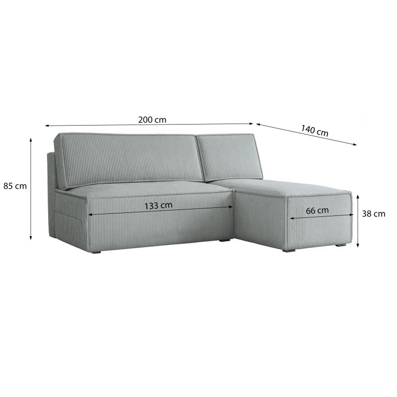 - Mebel jest wykonany w tkaninie POSO, modnym i przyjemnym w dotyku sztruksie