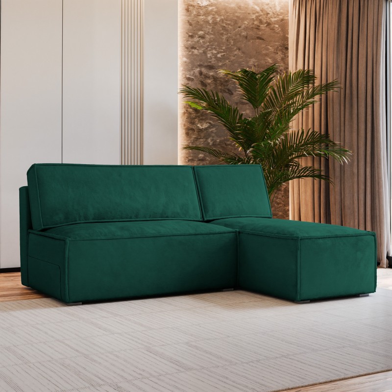 Masseno Narożnik BRISO z funkcją spania i pojemnikiem na pościel Narozniki L, Rozkładana sofa - Butelkowa zieleń, MONOLITH 37