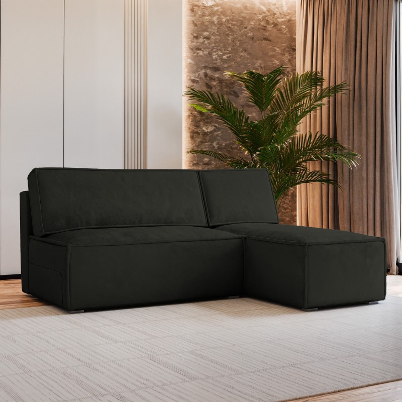 Masseno Narożnik BRISO z funkcją spania i pojemnikiem na pościel Narozniki L, Rozkładana sofa - Czarny, MONOLITH 95