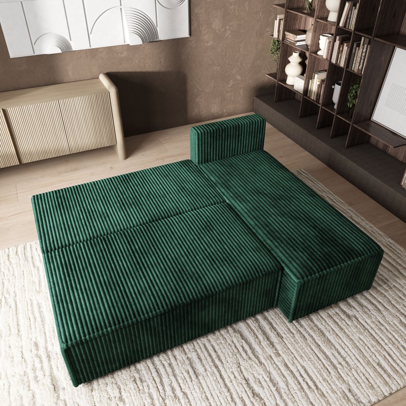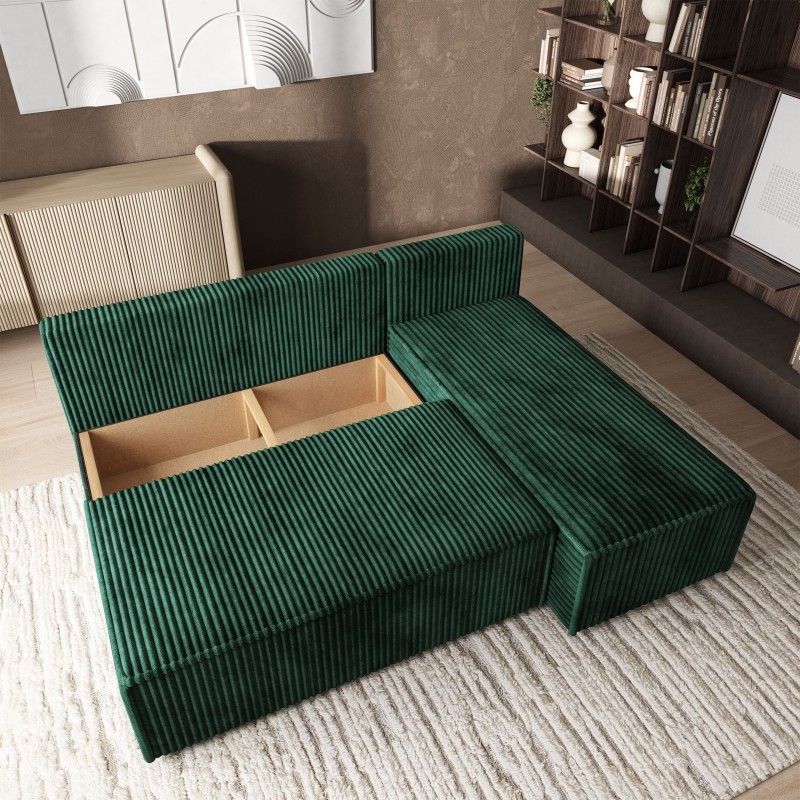 Masseno Narożnik BRISO z funkcją spania i pojemnikiem na pościel Narozniki L, Rozkładana sofa - Butelkowa zieleń, TILIA 39