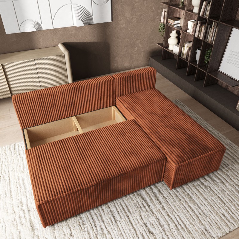 Masseno Narożnik BRISO z funkcją spania i pojemnikiem na pościel Narozniki L, Rozkładana sofa - Brązowy, TILIA 52