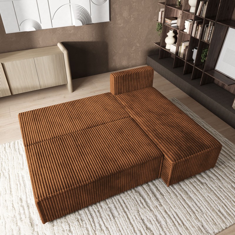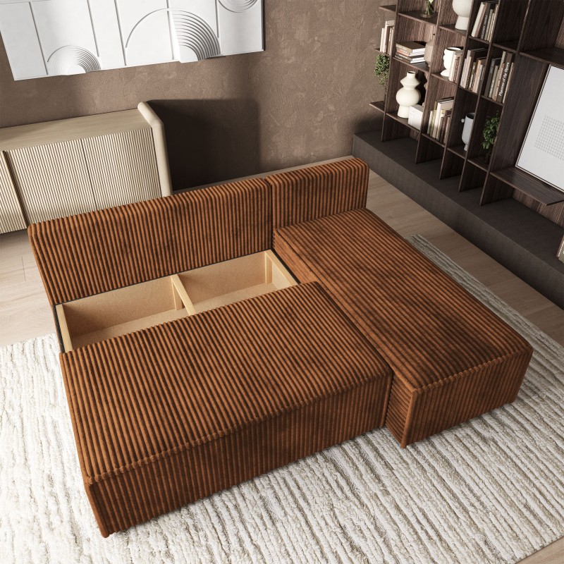 Masseno Narożnik BRISO z funkcją spania i pojemnikiem na pościel Narozniki L, Rozkładana sofa - Miedziany, TILIA 56