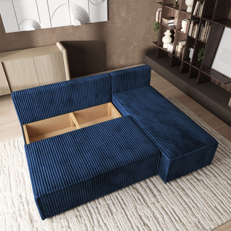 Masseno Narożnik BRISO z funkcją spania i pojemnikiem na pościel Narozniki L, Rozkładana sofa - Niebieski, TILIA 77