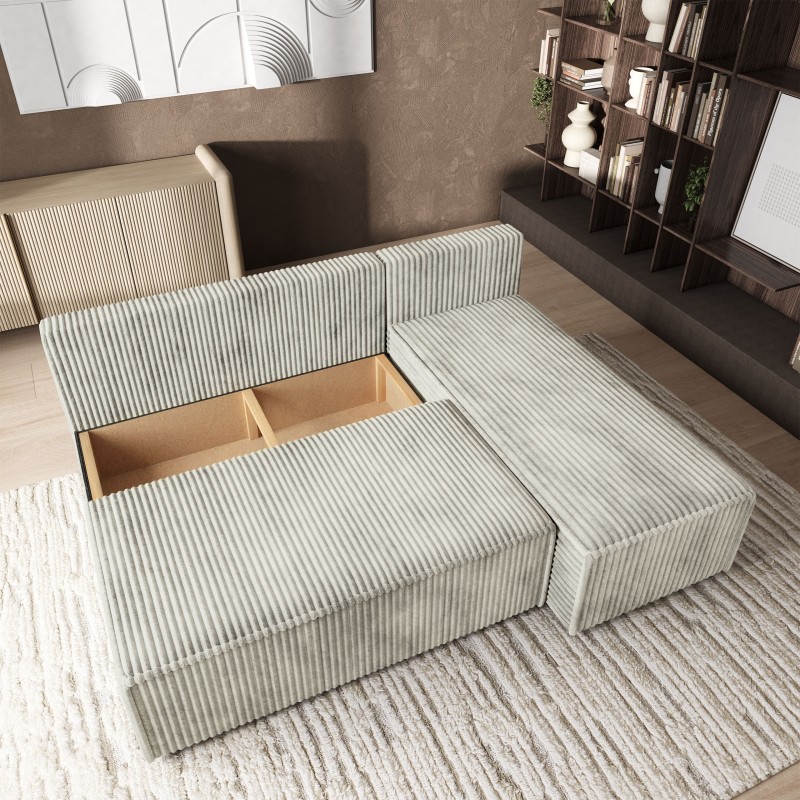Masseno Narożnik BRISO z funkcją spania i pojemnikiem na pościel Narozniki L, Rozkładana sofa - Jasnoszary, TILIA 83