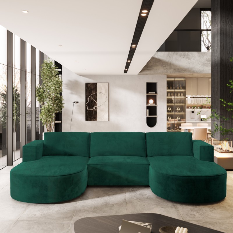 Masseno Narożnik VEZZO z funkcją spania i pojemnikiem na pościel Narozniki U, Rozkładana sofa - Butelkowa zieleń, MONOLITH 37