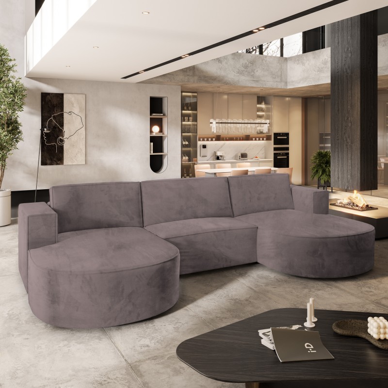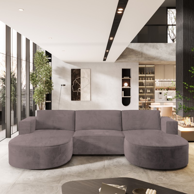Masseno Narożnik VEZZO z funkcją spania i pojemnikiem na pościel Narozniki U, Rozkładana sofa - Wrzosowy, MONOLITH 62