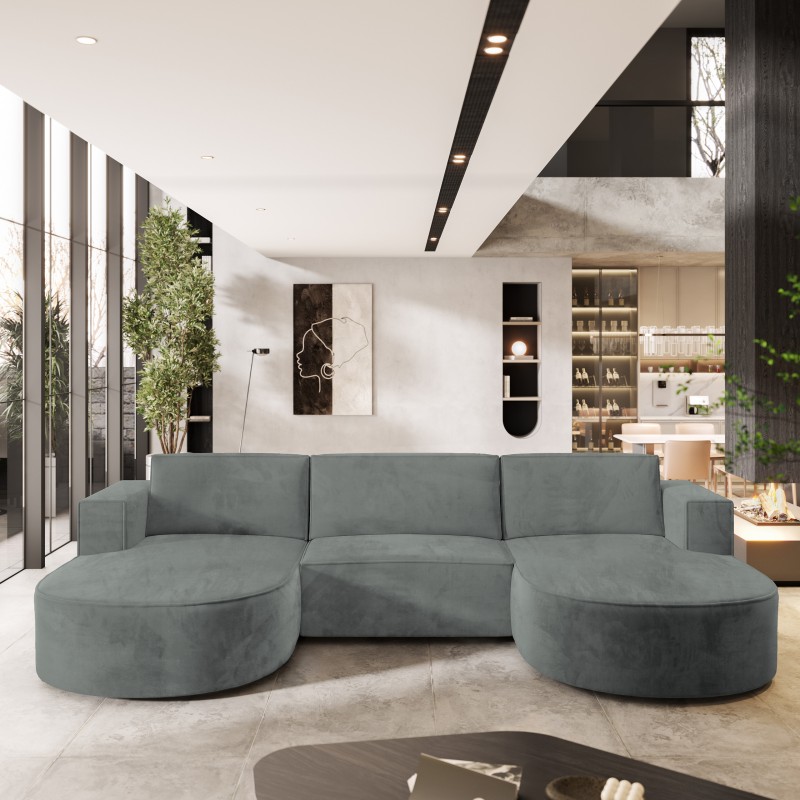 Masseno Narożnik VEZZO z funkcją spania i pojemnikiem na pościel Narozniki U, Rozkładana sofa - Szary, MONOLITH 85