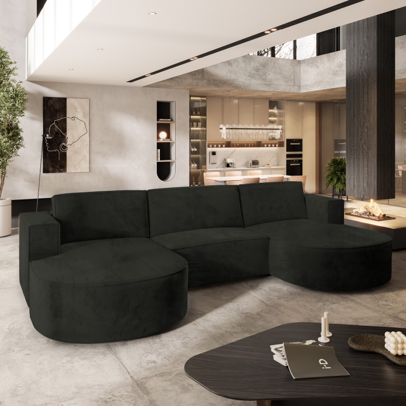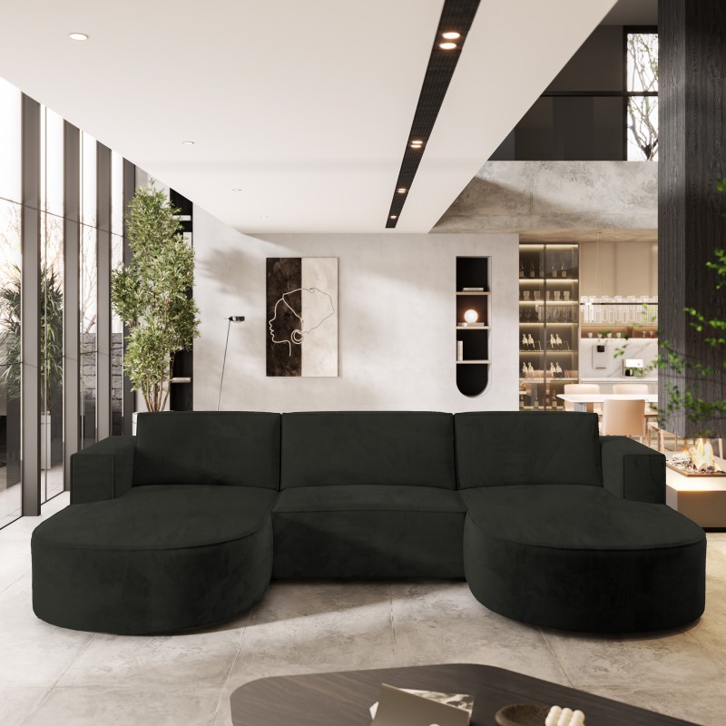 Masseno Narożnik VEZZO z funkcją spania i pojemnikiem na pościel Narozniki U, Rozkładana sofa - Czarny, MONOLITH 95