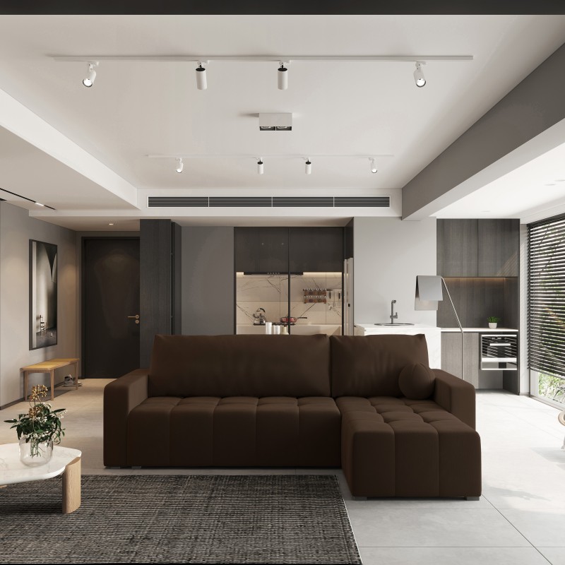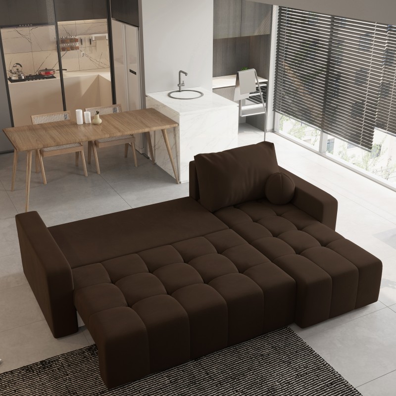 Masseno Narożnik VOLIRA z funkcją spania i pojemnikiem na pościel Narozniki L, Rozkładana sofa - Brązowy, KRONOS 06
