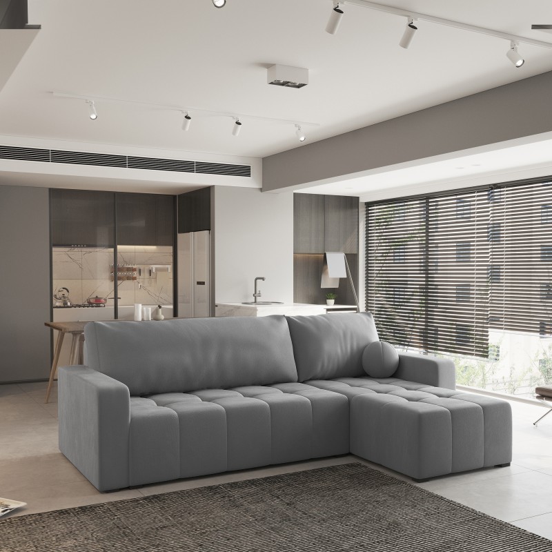 Masseno Narożnik VOLIRA z funkcją spania i pojemnikiem na pościel Narozniki L, Rozkładana sofa - Szary, KRONOS 15