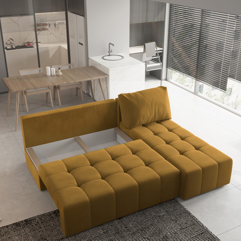 Masseno Narożnik DOMIRA z funkcją spania i pojemnikiem na pościel Narozniki L, Rozkładana sofa - Żółty, KRONOS 01