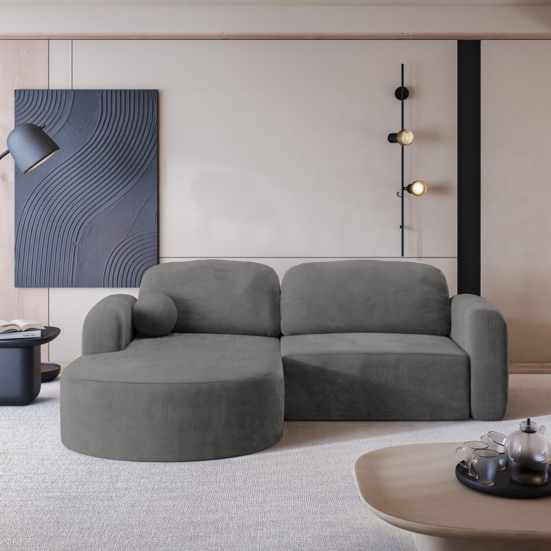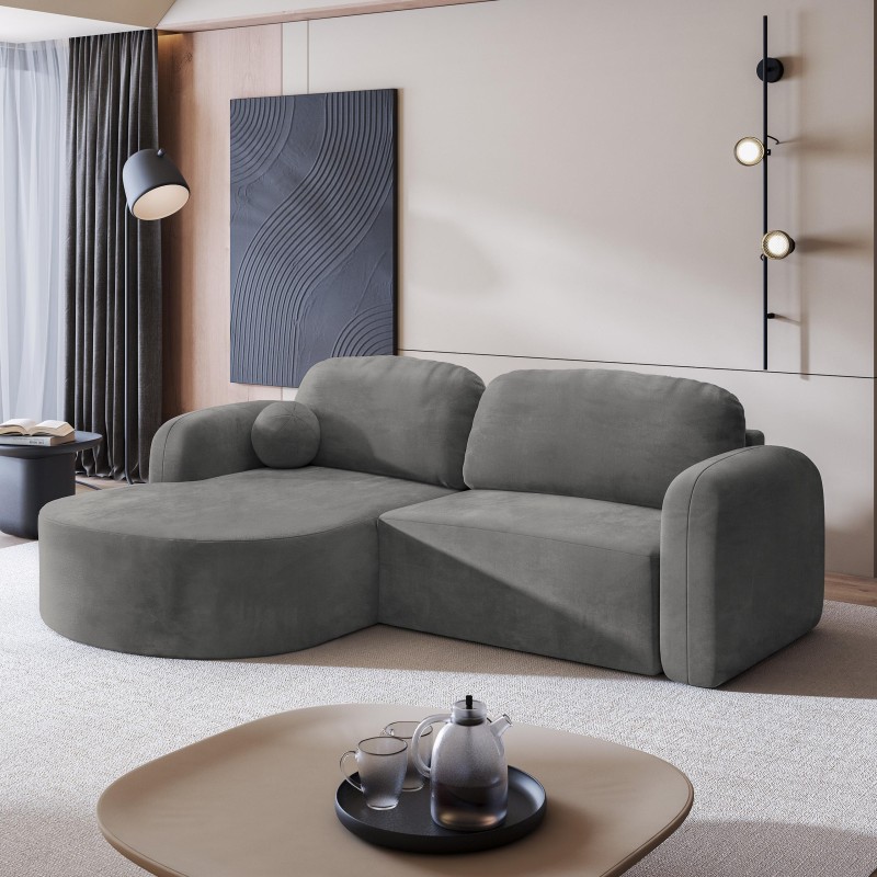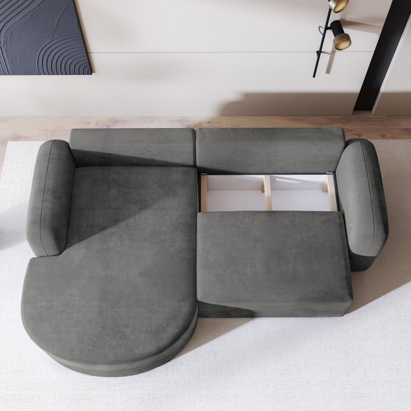 Masseno Narożnik AMILIA z funkcją spania i pojemnikiem na pościel Narozniki L, Rozkładana sofa - Szary, MONOLITH 85