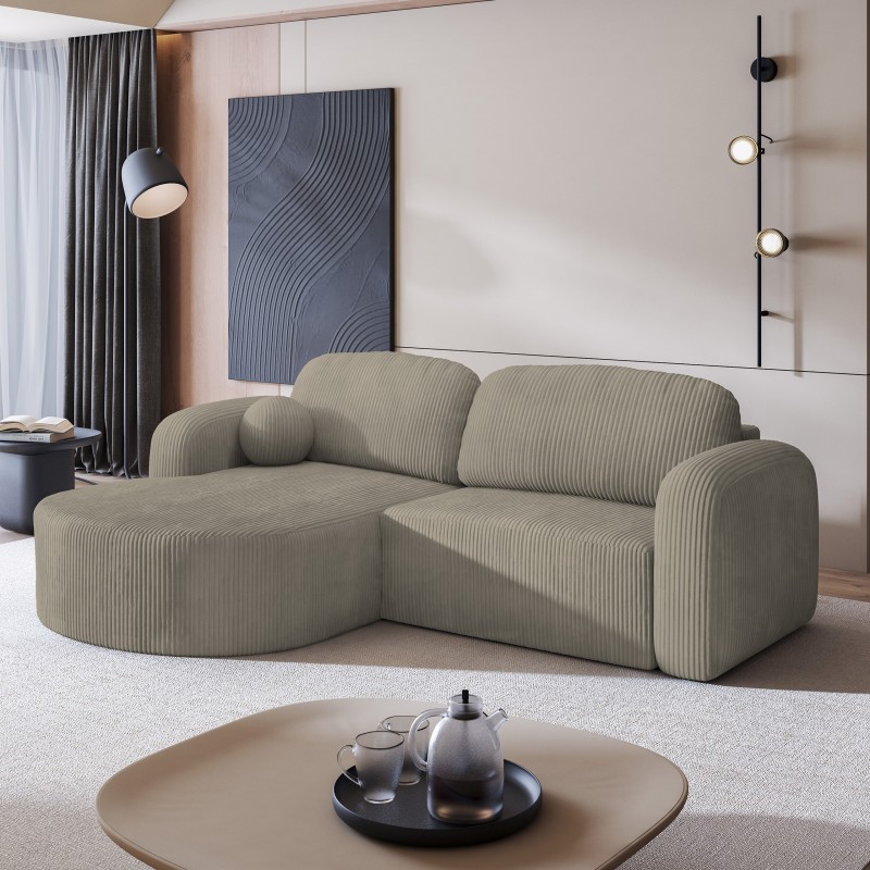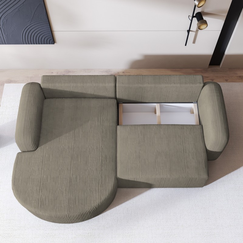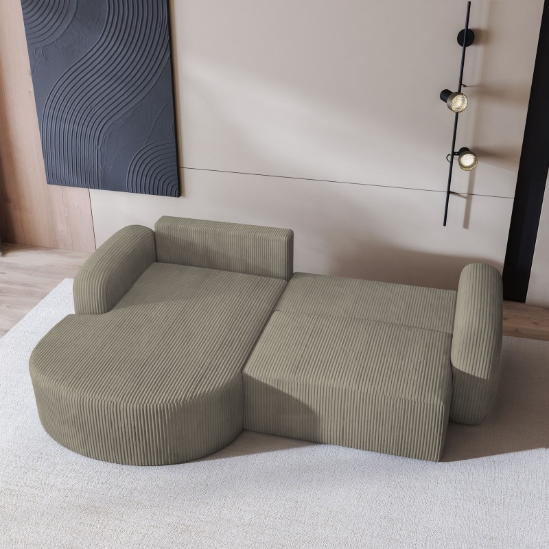 Masseno Narożnik AMILIA z funkcją spania i pojemnikiem na pościel Narozniki L, Rozkładana sofa - Beżowy, POSO 02