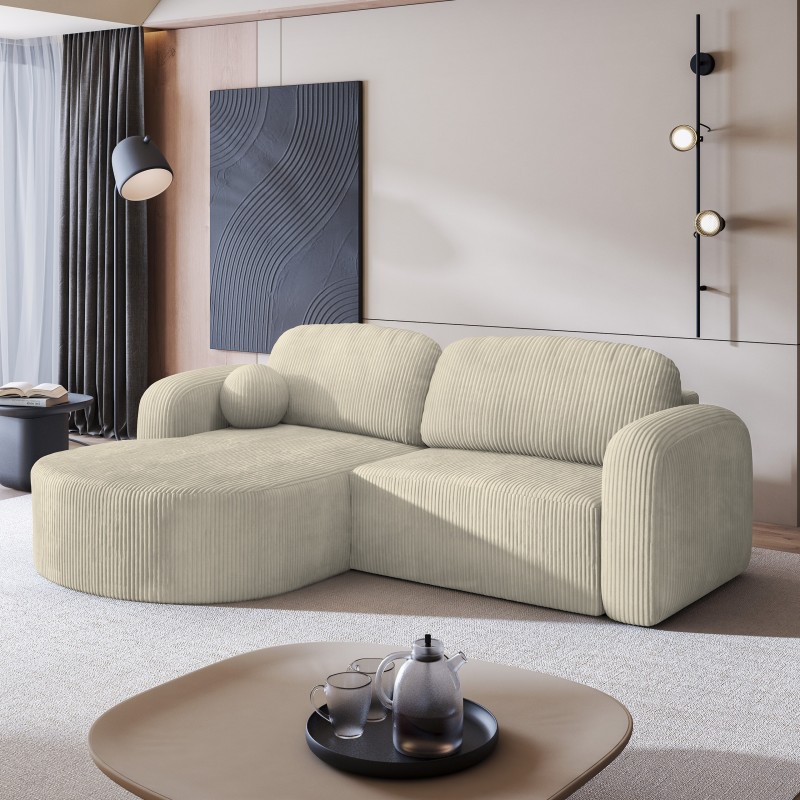 Masseno Narożnik AMILIA z funkcją spania i pojemnikiem na pościel Narozniki L, Rozkładana sofa - Kremowy, POSO 100