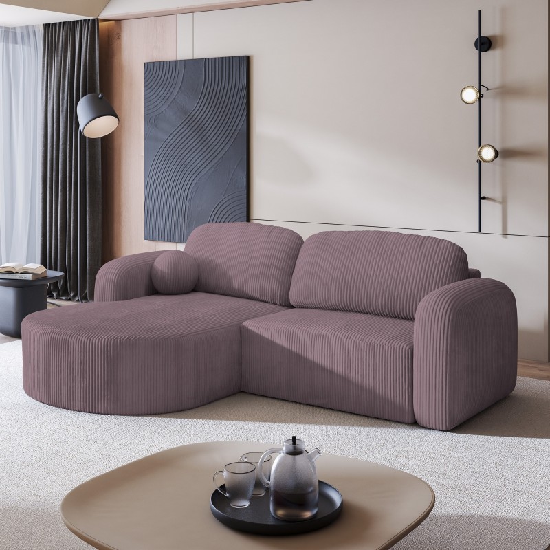 Masseno Narożnik AMILIA z funkcją spania i pojemnikiem na pościel Narozniki L, Rozkładana sofa - Wrzos, POSO 130