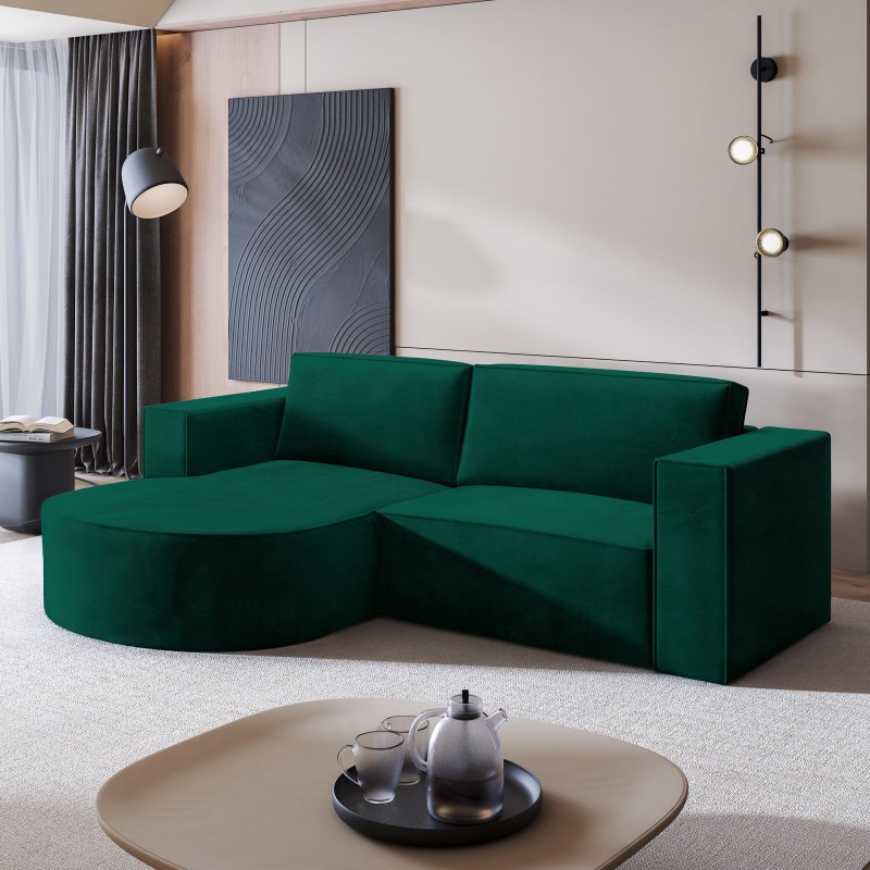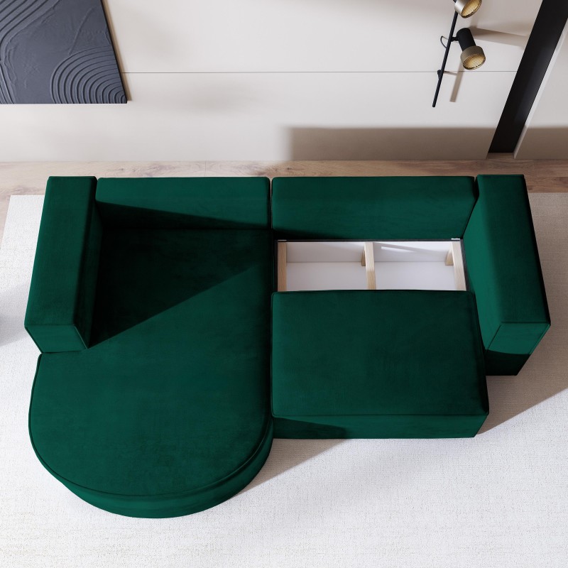 Masseno Narożnik SORELA z funkcją spania i pojemnikiem na pościel Narozniki L, Rozkładana sofa - Butelkowa zieleń, MONOLITH 37