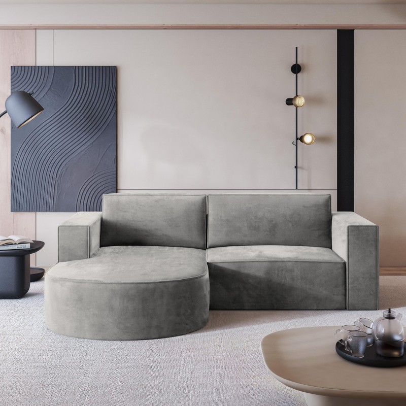 Masseno Narożnik SORELA z funkcją spania i pojemnikiem na pościel Narozniki L, Rozkładana sofa - Jasnoszary, MONOLITH 84