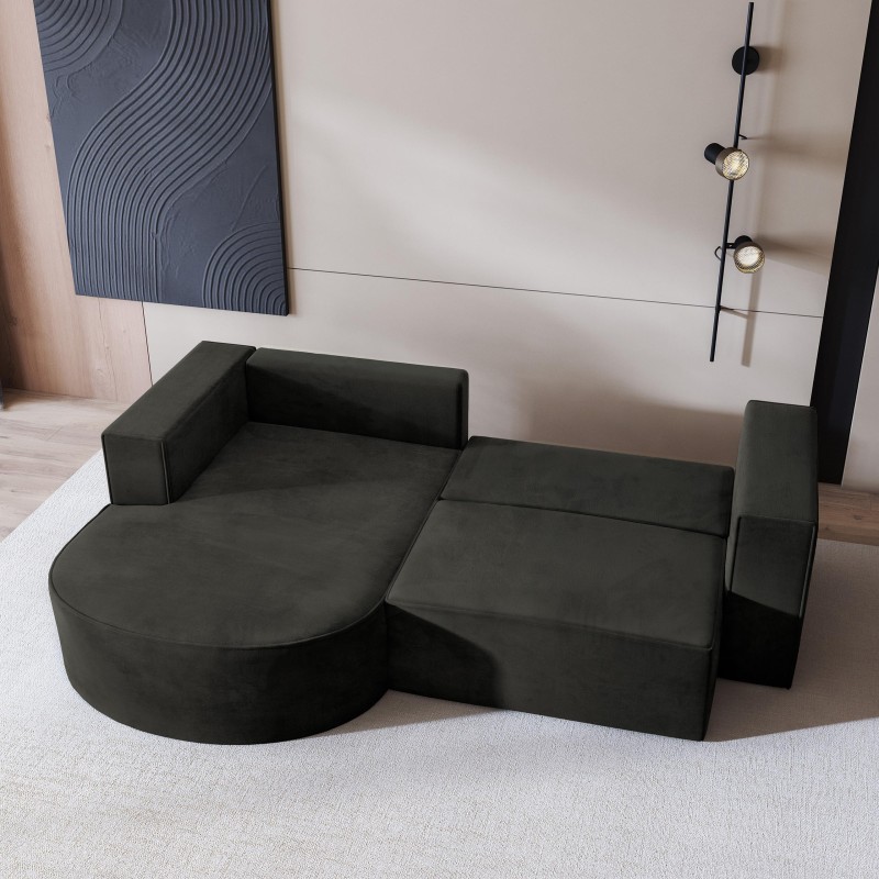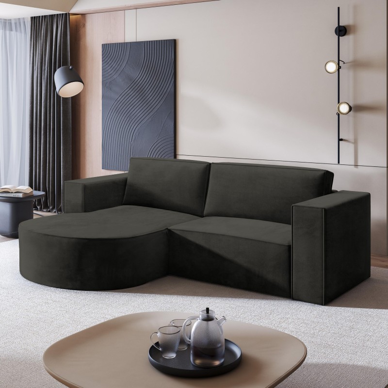 Masseno Narożnik SORELA z funkcją spania i pojemnikiem na pościel Narozniki L, Rozkładana sofa - Czarny, MONOLITH 95
