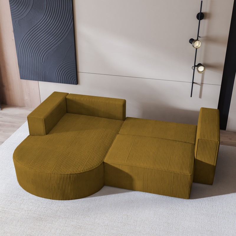 Masseno Narożnik SORELA z funkcją spania i pojemnikiem na pościel Narozniki L, Rozkładana sofa - Żółty, POSO 01