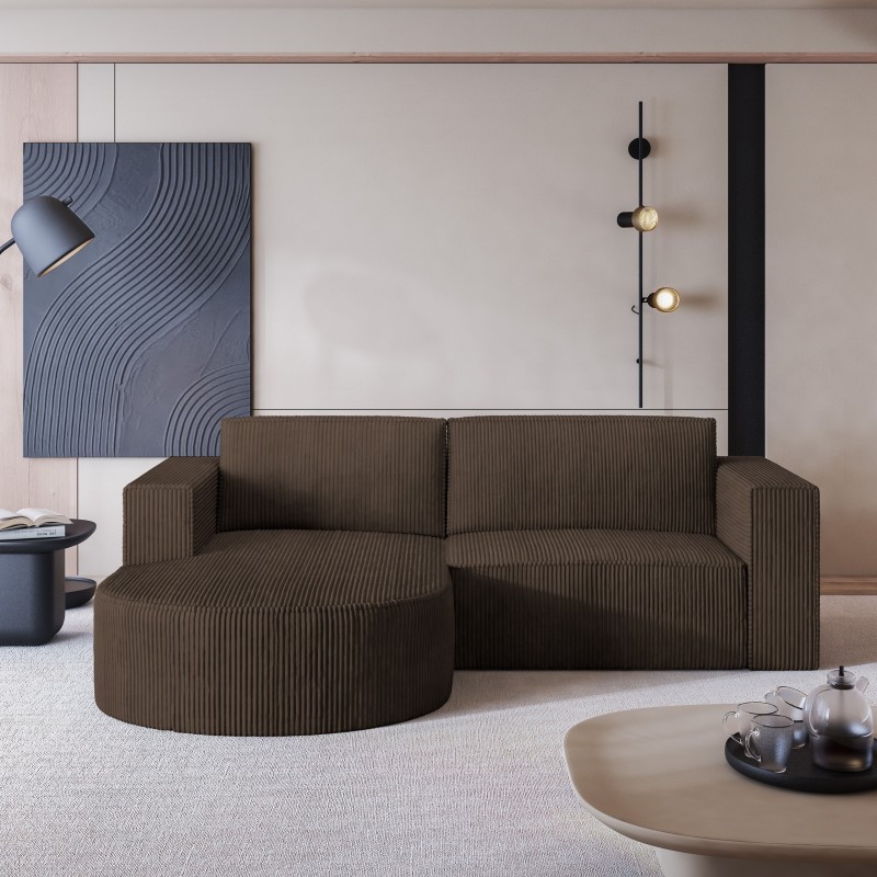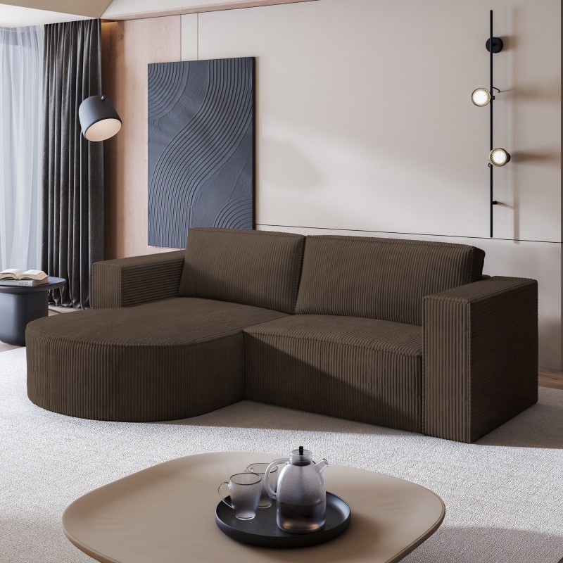 Masseno Narożnik SORELA z funkcją spania i pojemnikiem na pościel Narozniki L, Rozkładana sofa - Brązowy, POSO 06