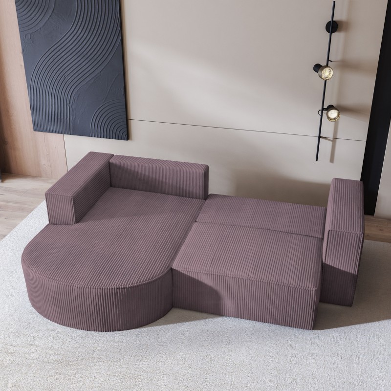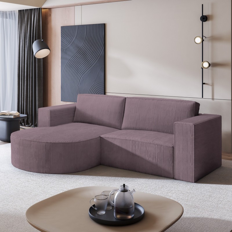 Masseno Narożnik SORELA z funkcją spania i pojemnikiem na pościel Narozniki L, Rozkładana sofa - Wrzos, POSO 130