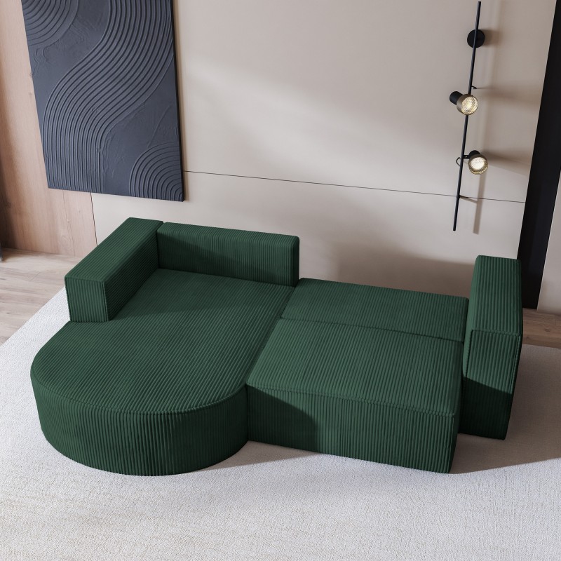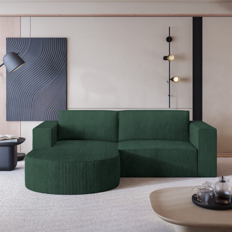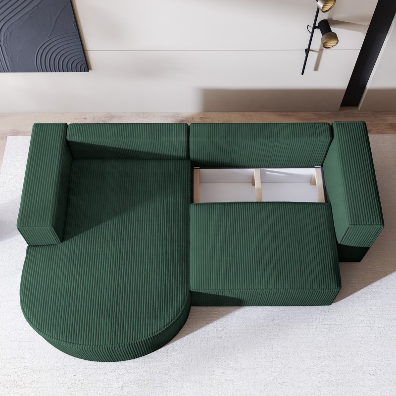 Masseno Narożnik SORELA z funkcją spania i pojemnikiem na pościel Narozniki L, Rozkładana sofa - Zielony, POSO 14