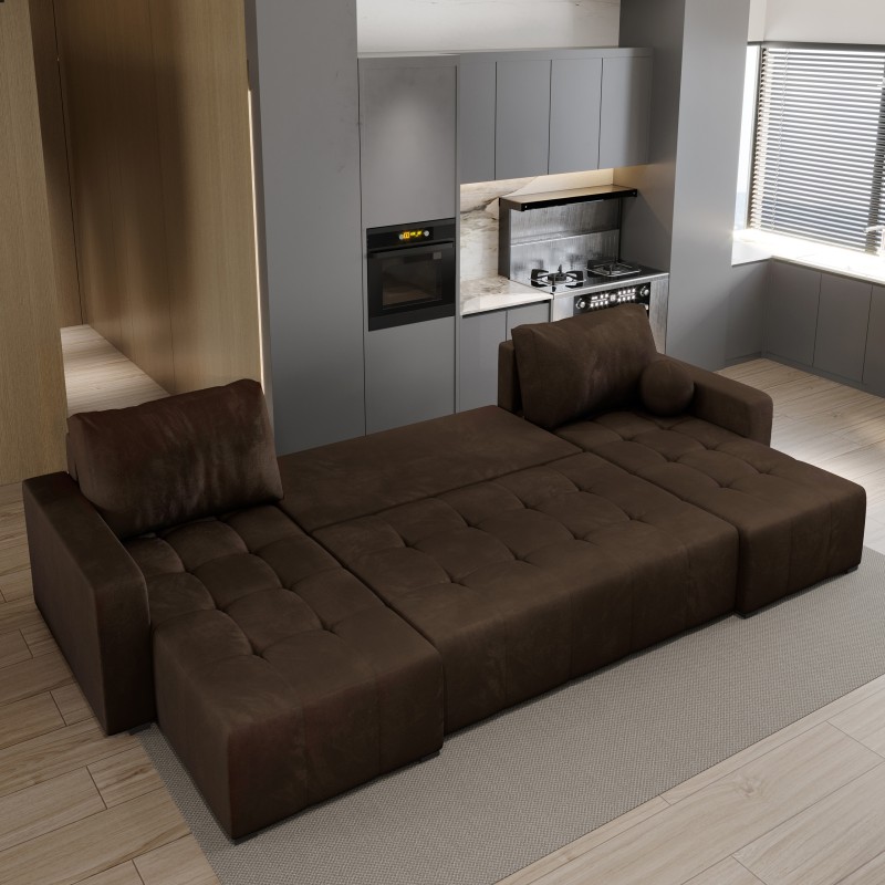 Masseno Narożnik TOLARI z funkcją spania i pojemnikiem na pościel Narozniki U, Rozkładana sofa - Brązowy, KRONOS 06