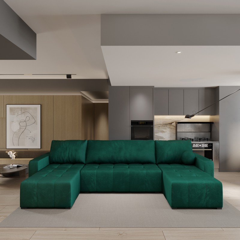 Masseno Narożnik TOLARI z funkcją spania i pojemnikiem na pościel Narozniki U, Rozkładana sofa - Butelkowa zieleń, KRONOS 19