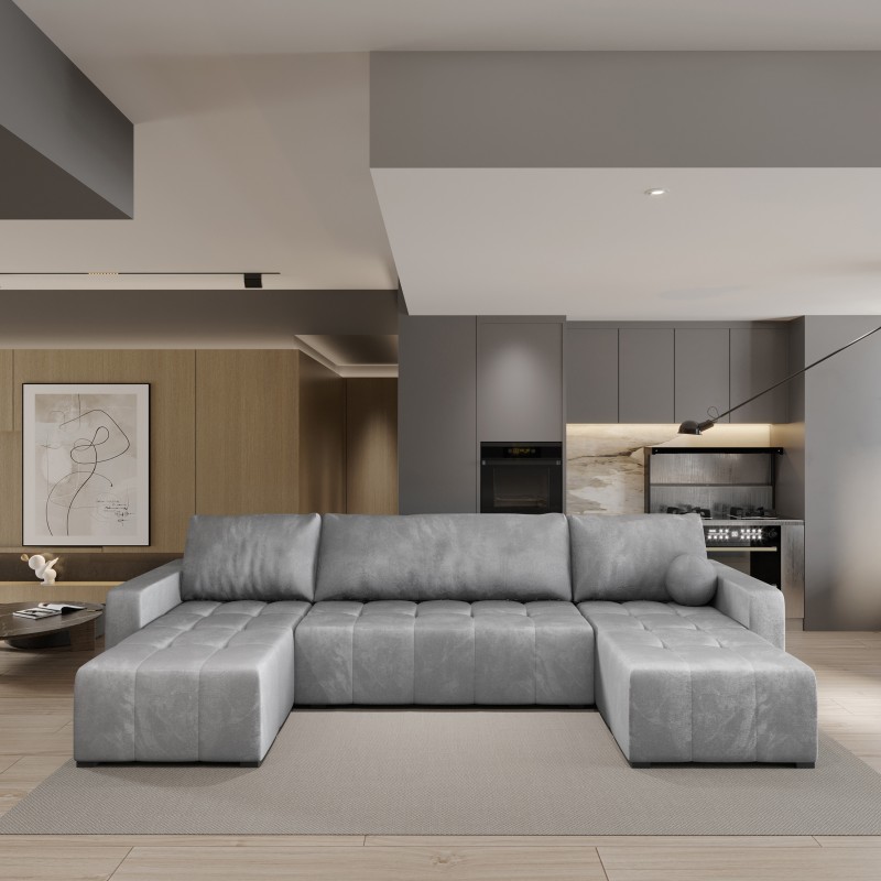 Masseno Narożnik TOLARI z funkcją spania i pojemnikiem na pościel Narozniki U, Rozkładana sofa - Jasnoszary, PAROS 05