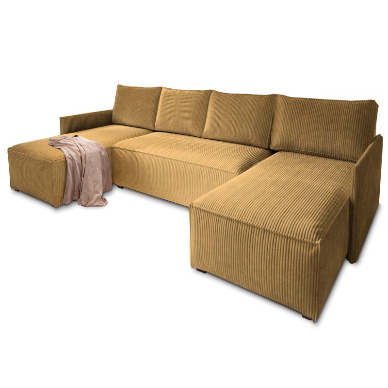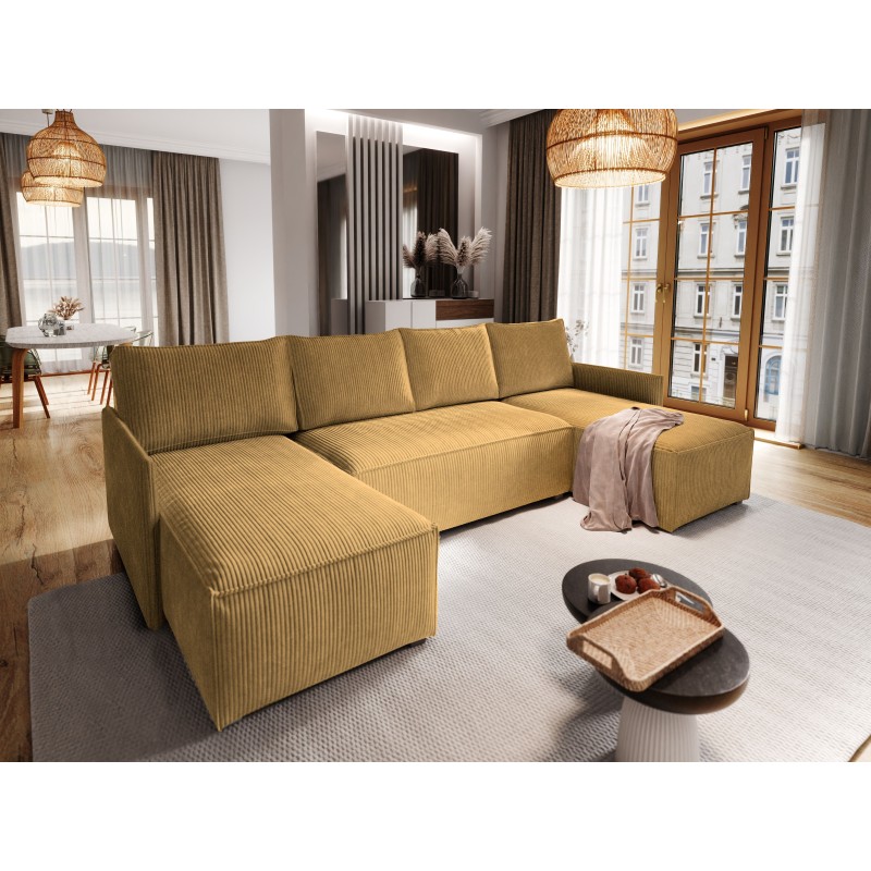Masseno Narożnik TRES z funkcją spania i pojemnikiem na pościel Narozniki U, Rozkładana sofa - Żółty, POSO 01