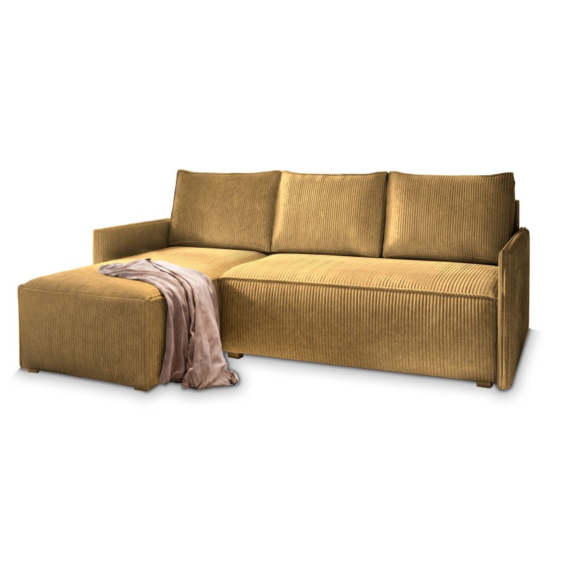 Masseno Narożnik PERUSI z funkcją spania i pojemnikiem na pościel Narozniki L, Rozkładana sofa - Żółty, POSO 01