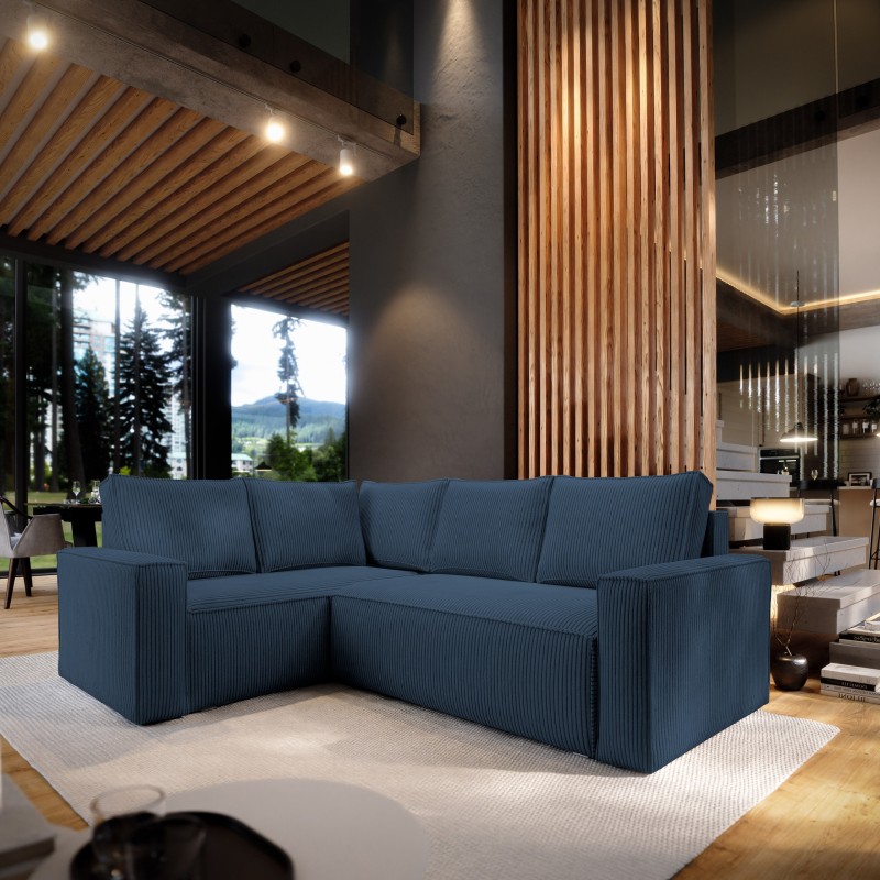 Masseno Narożnik ESTANO z funkcją spania i pojemnikiem na pościel Narozniki L, Rozkładana sofa - Niebieski, POSO 05