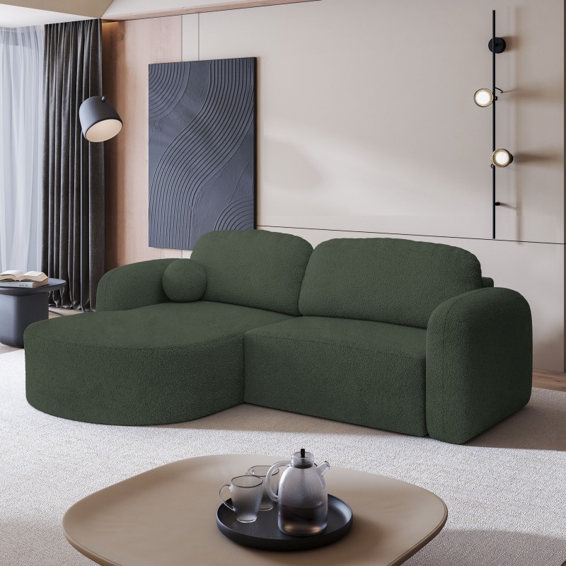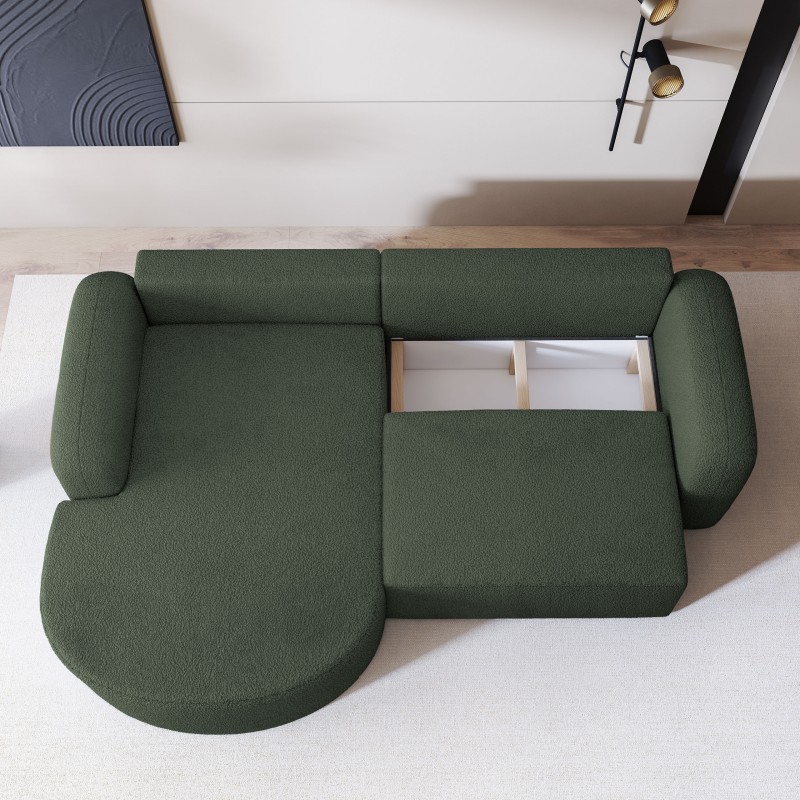 Masseno Narożnik AMILIA z funkcją spania i pojemnikiem na pościel Narozniki L, Rozkładana sofa - Zielony, QUELLE 37