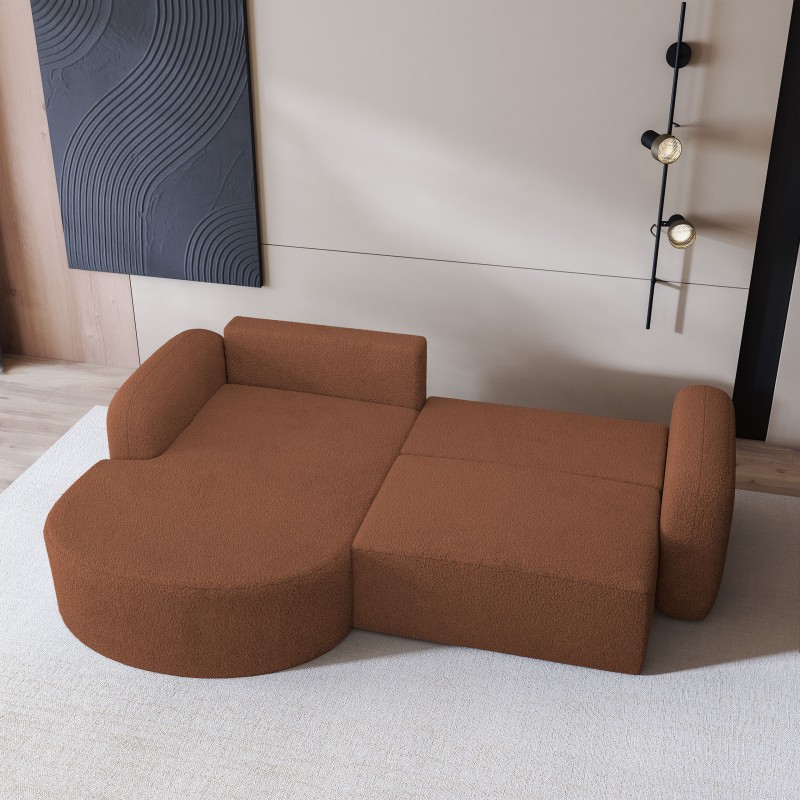 Masseno Narożnik AMILIA z funkcją spania i pojemnikiem na pościel Narozniki L, Rozkładana sofa - Miedziany, QUELLE 54