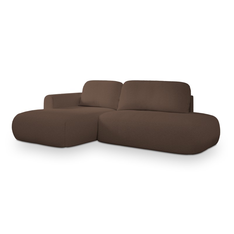 Narożnik został obity luksusową tkaniną QUELLE o strukturze typu boucle, potocznie nazywaną „barankiem”. Jej miękka, pętelkowa powierzchnia tworzy efekt naturalnego, tekstylnego ciepła, nadając meblowi wyjątkową miękkość i wizualną lekkość.