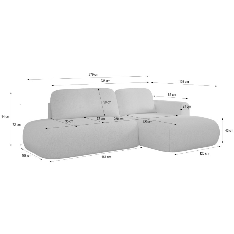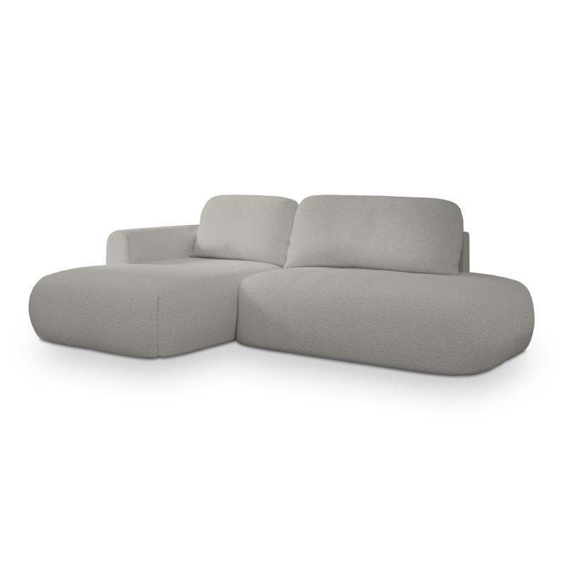 Narożnik został obity luksusową tkaniną QUELLE o strukturze typu boucle, potocznie nazywaną „barankiem”. Jej miękka, pętelkowa powierzchnia tworzy efekt naturalnego, tekstylnego ciepła, nadając meblowi wyjątkową miękkość i wizualną lekkość.