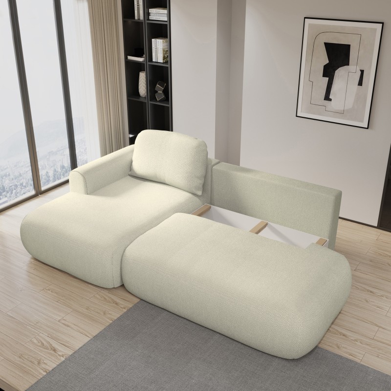 Masseno Narożnik NUVIRA z funkcją spania i pojemnikiem na pościel Narozniki L, Rozkładana sofa - Kremowy, SORO 02