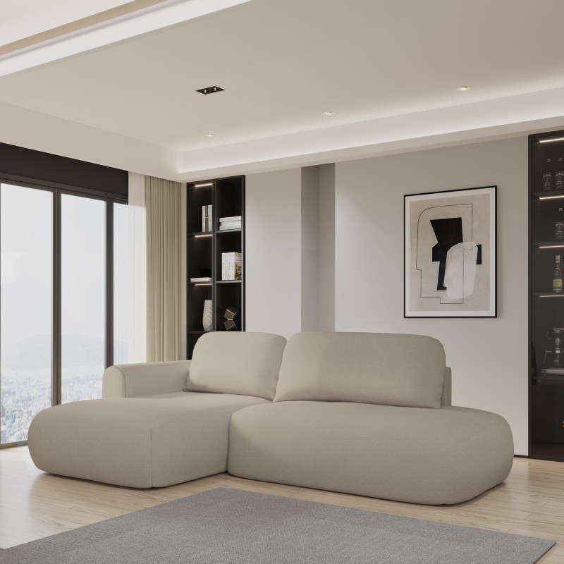 NUVIRA to narożnik, który zachwyca od pierwszego spojrzenia swoją miękką, organiczną formą i subtelną elegancją. To mebel stworzony z myślą o nowoczesnych wnętrzach, w których liczy się nie tylko design, ale również funkcjonalność i wygoda użytkowania. Zaoblone kształty, przytulna faktura tkaniny oraz praktyczne rozwiązania sprawiają, że NUVIRA staje się sercem domowej strefy relaksu.