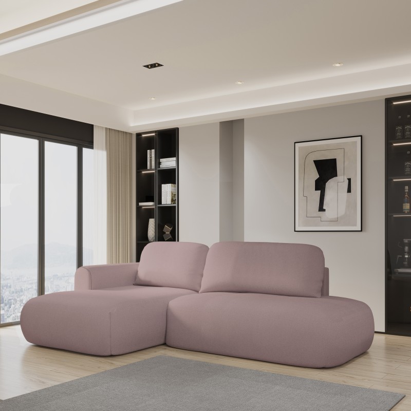 Masseno Narożnik NUVIRA z funkcją spania i pojemnikiem na pościel Narozniki L, Rozkładana sofa - Pudrowy róż, SORO 61