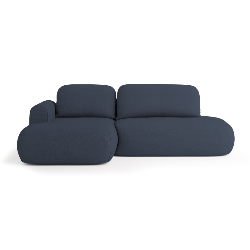 - Designerska forma – narożnik przyciąga uwagę swoją subtelnie zaokrągloną bryłą – bez ostrych krawędzi, co czyni go wyjątkowo przytulnym i przyjaznym w odbiorze. Zintegrowane podłokietniki oraz szerokie, miękkie oparcia zapewniają ergonomiczne podparcie i wyjątkowy komfort siedzenia. Lekka forma unosi się wizualnie nad podłogą, tworząc wrażenie lekkości, mimo solidnej konstrukcji.