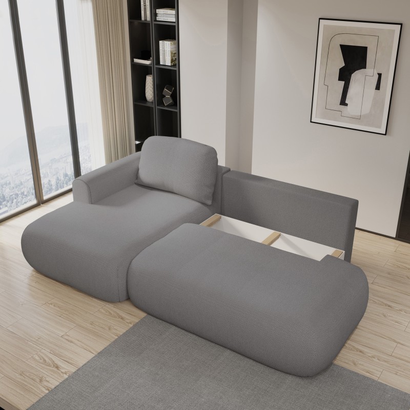Masseno Narożnik NUVIRA z funkcją spania i pojemnikiem na pościel Narozniki L, Rozkładana sofa - Szary, SORO 90