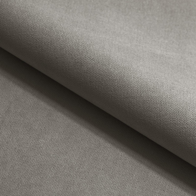 Narożnik został tapicerowany elegancką tkaniną SORO o drobnej, plecionej strukturze z subtelnym welurowym meszkiem. Jej miękka i przyjemna w dotyku powierzchnia nadaje meblowi wizualną lekkość i szlachetny połysk, łącząc stylowy wygląd z wysoką trwałością na co dzień.